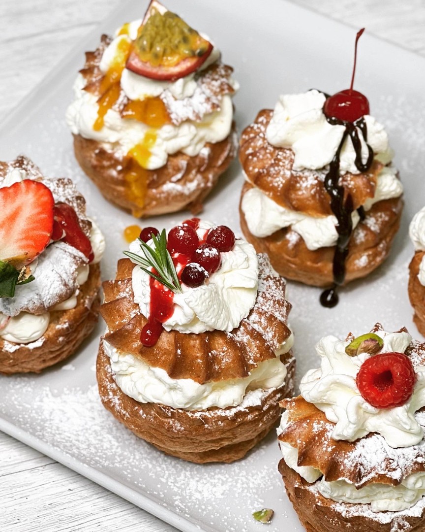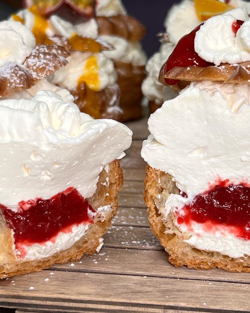 Koostisosad: kanamuna, nisujahu, või, vahukoor, piim, maasikas, vaarikas, apelsin, granadill, kirss, tume šokolaad, jõhvikas, pohl, pistaatsia pähkel, suhkur, pektiin